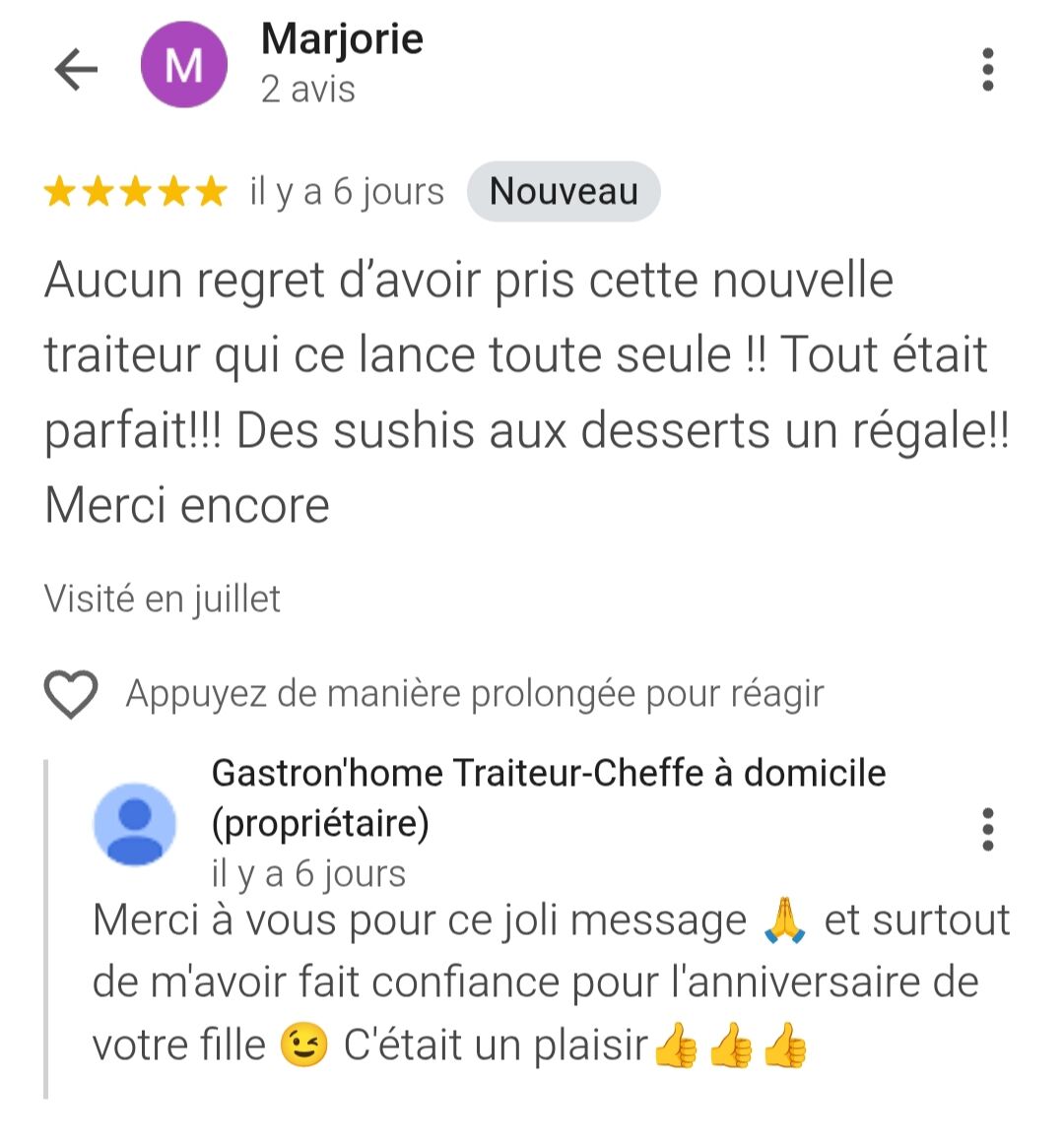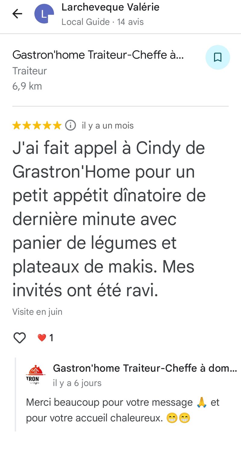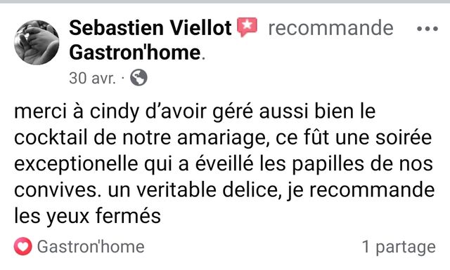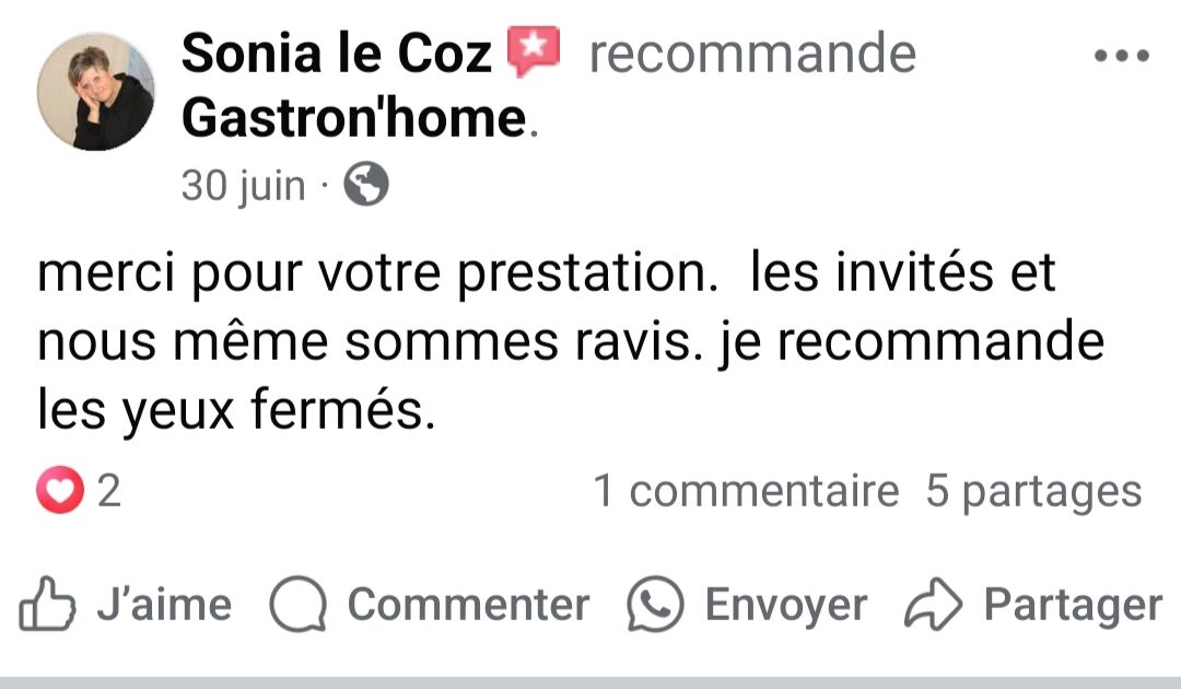 De l'apéritif au dessert, je compose des menus personnalisés et savoureux pour tous vos événements: Repas de famille, mariages, anniversaires, réceptions d'entreprise et moments conviviaux entre amis.